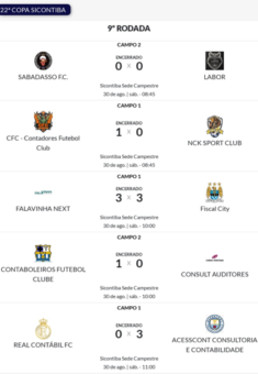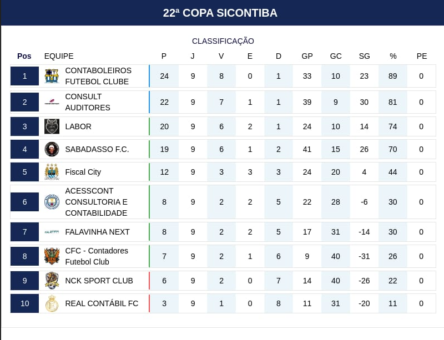 A fase de grupos da 22ª Copa Sicontiba chegou ao fim no último sábado (30), na Sede Campestre do Sicontiba, após nove rodadas repletas de emoção, gols e muito equilíbrio. O torneio agora entra na fase de mata-mata com oito equipes classificadas em busca da taça.